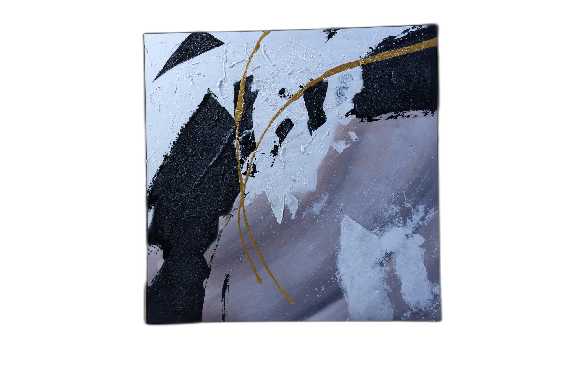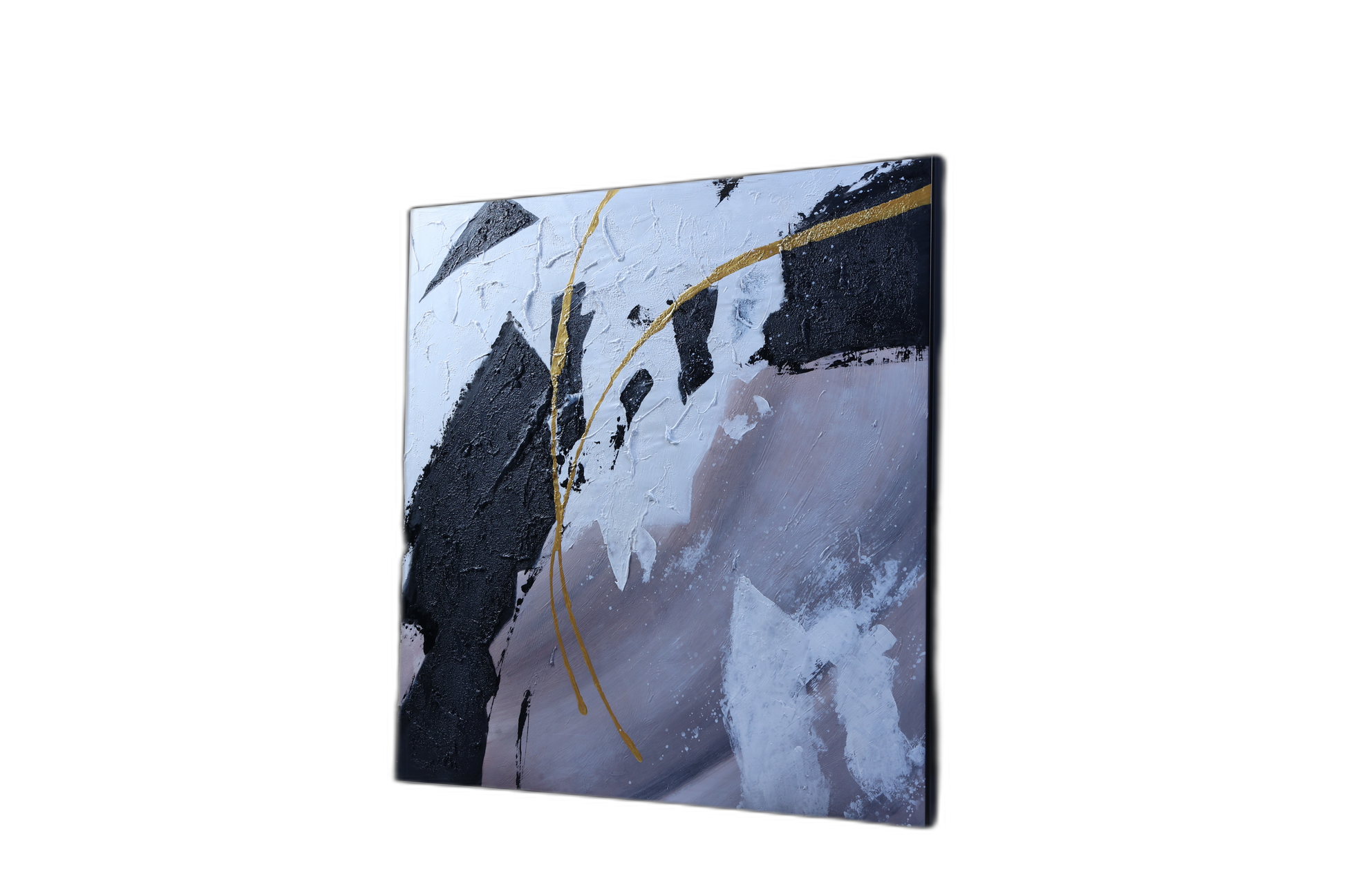 "Black Thick Textured White Soft Lilac Gray Metallic Gold Cool Gray"