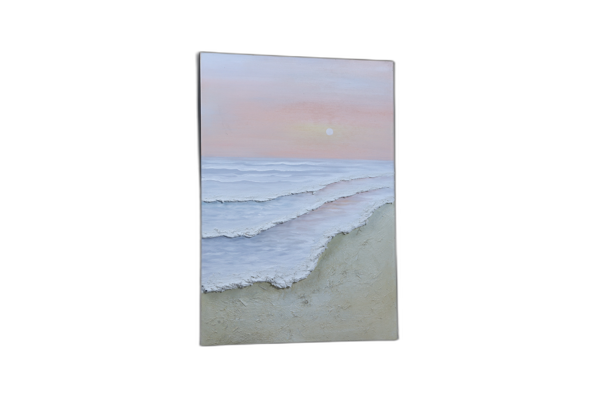 "Pale Peach/Salmon Pink Soft Light Yellow/Beige Sand Pale Blue/Lavender (in water) Bright White (for sun and seafoam)"